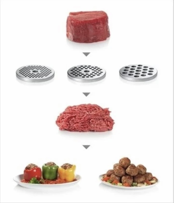 - عملکردها: چرخ کردن گوشت، ماهی / درست کرن سوسیس و کباب لبنانی