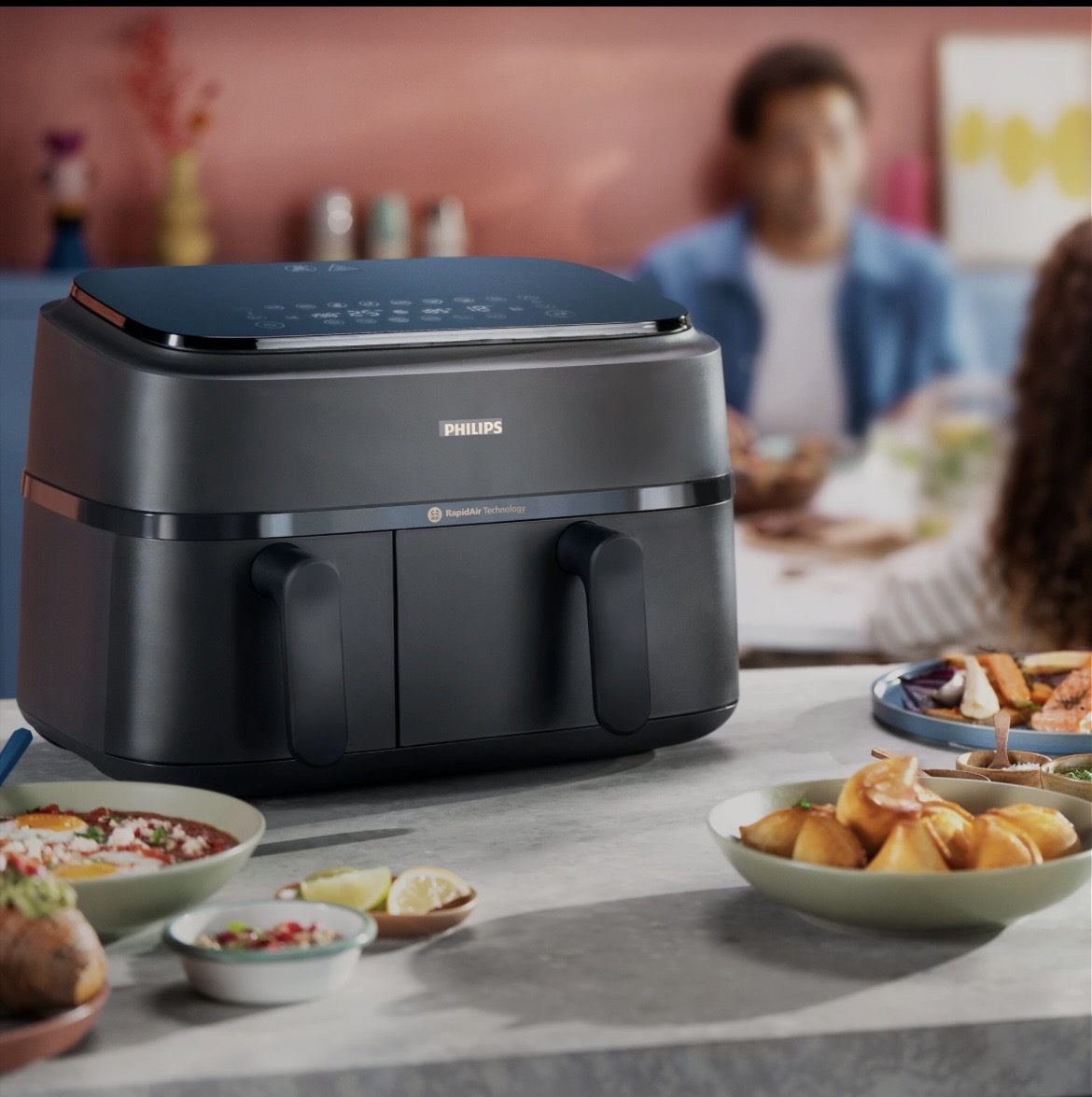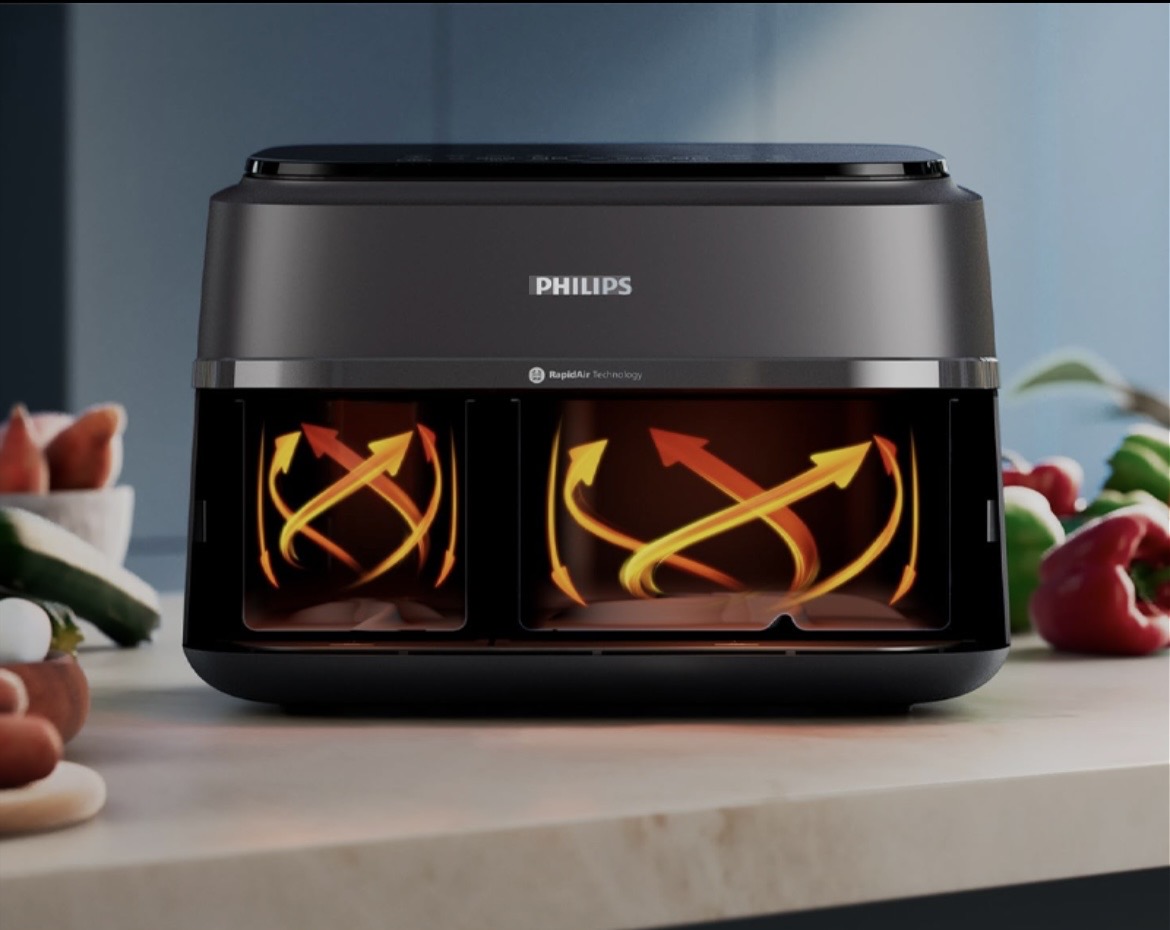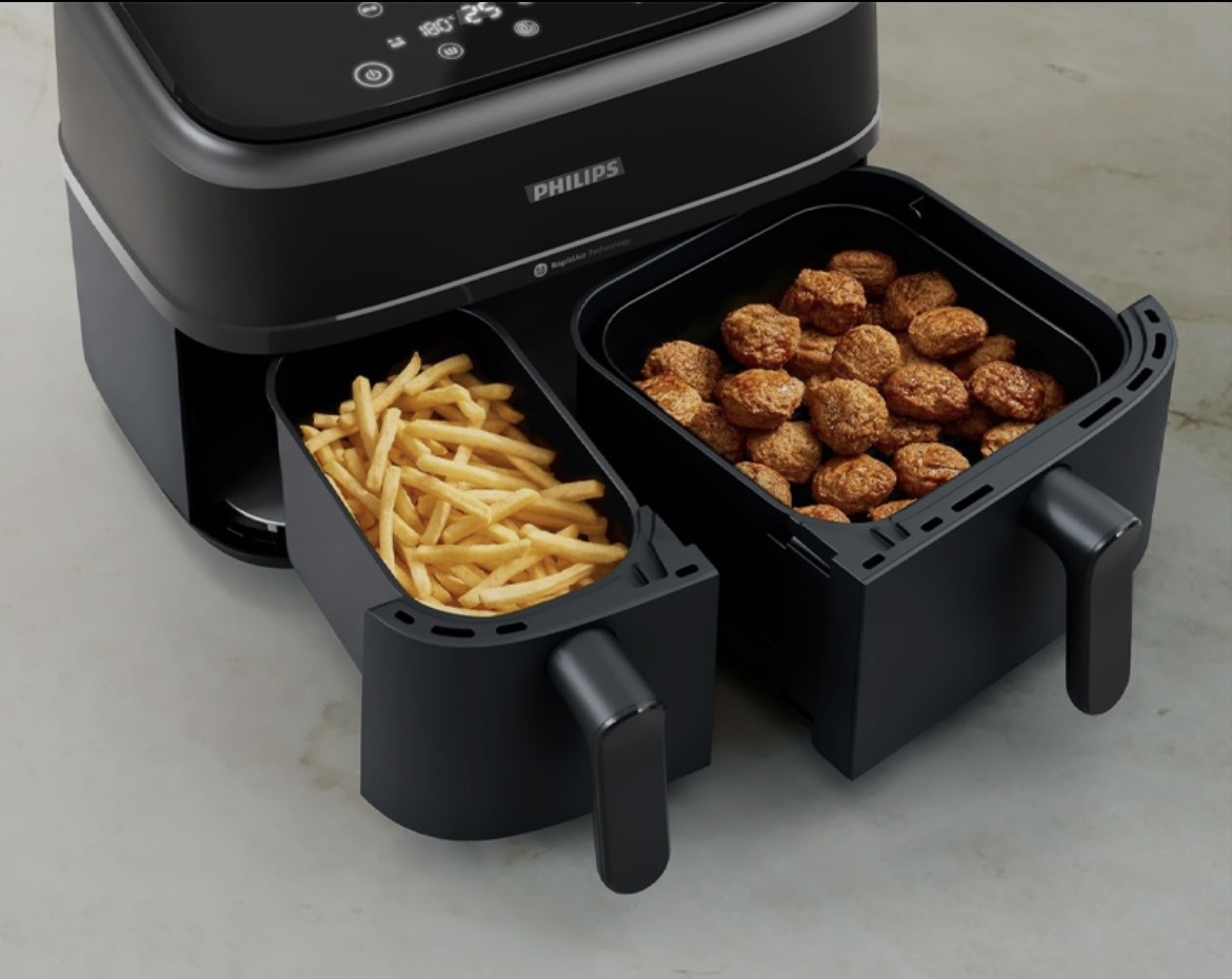 کشور سازنده: چین توان: 2750 وات ظرفیت: 9 لیتر (6 لیتر+ 3 لیتر) تعداد برنامه ها: 8 برنامه متنوع قابلیت تنظیم دما و زمان: دارد فناوری Rapid Air: پخت موادغذایی با گردش هوا قابلیت همگام سازی دو محفظه پخت: دارد